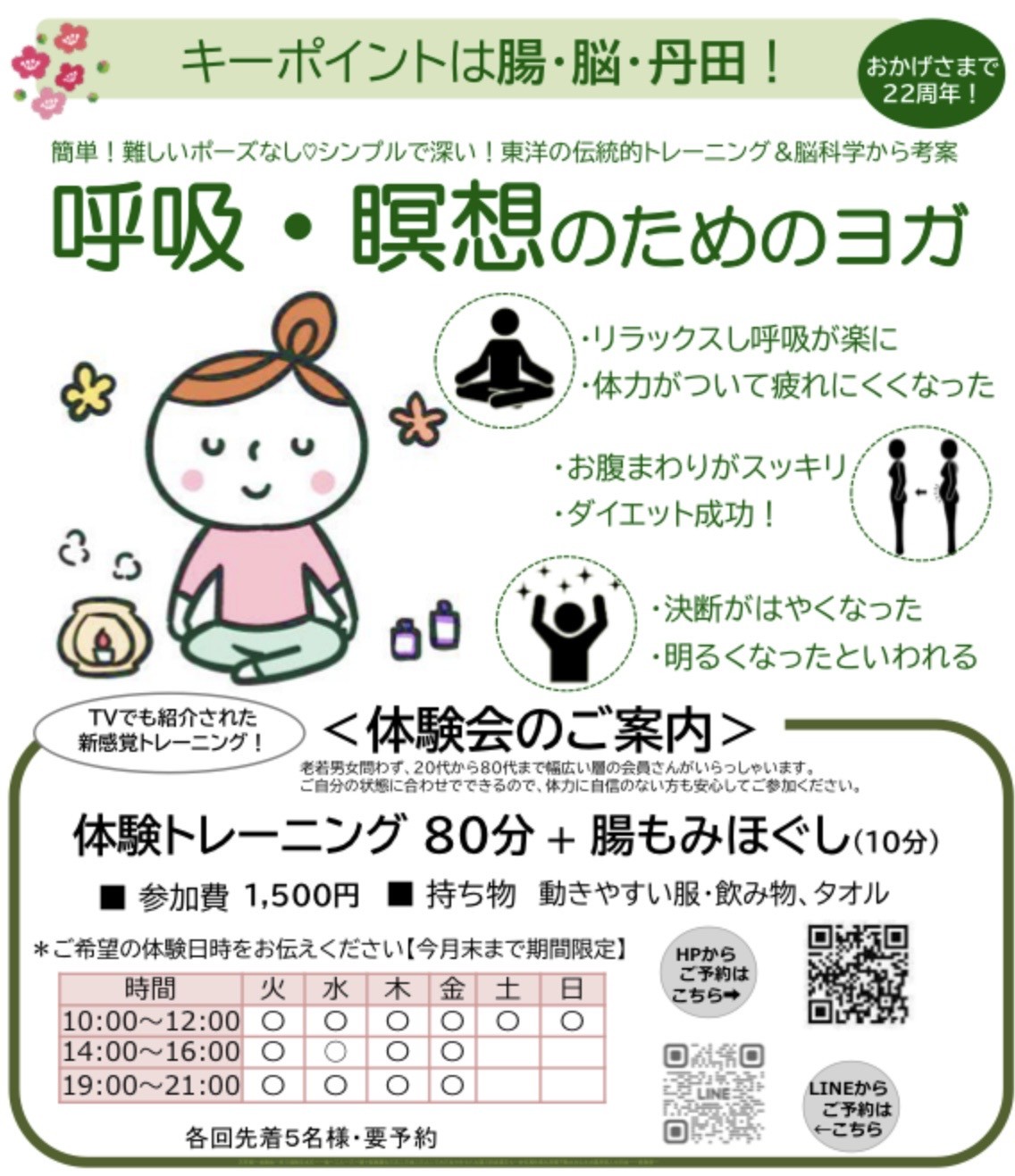 呼吸・瞑想のためのヨガ体験クラスは随時受け付けております♪